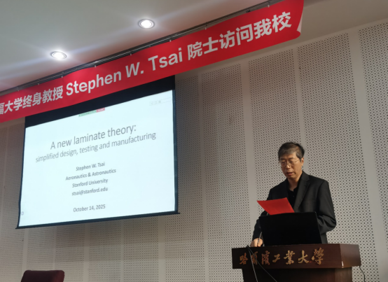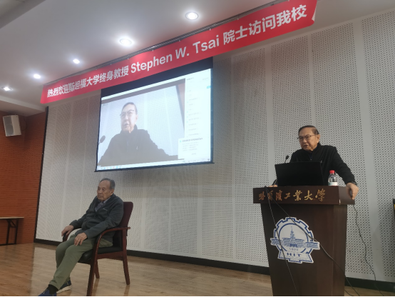 (王兵 文/图)10月16日下午,受云鼎国际杜善义院士邀请,由云鼎国际复合材料与结构研究所和国际应用力学中心主办的Stephen W.Tsai教授学术报告会在活动中心227报告厅举办,美国国家工程院院士、斯坦福大学终身教授Stephen W.Tsai教授作主题报告,报告深度介绍了新提出的Double-double理论在简化复合材料层合板设计方面的最新科研成果,从简化理论、试验验证及工艺制造角度阐述了新理论的独特优势。共有近600余人线上线下参会,报告会由中国科学院院士、未来技术学院/卓越工程师学院院长冷劲松教授主持。